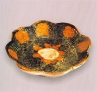 图片名称: 三彩釉印莲花水波纹花式口碟