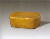 枕灰白胎,體形较小,为长方形,圆角,枕面呈坡状,前低后高,平底,露胎,徒刑纯朴厚重,是唐代流形样式。胎上施用化妆土一層,通體施黄釉,无纺,下班质感强,釉憎薄而均匀,釉而光润,釉色淡雅娇艳,是我国早期黄釉瓷器的佳作。