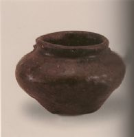 罐为小底,扁鼓腹,矮直口,口部下有两个对称的圆孔,可以穿系。此罐紫黑色胎,内外均施黑釉,釉色光亮如漆。