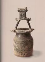 井颈微束,上阴刻四道弦纹,井身浑圆。井垣平面呈[井]字形,上附井架,略呈[大]字形,其两柱立於井两侧,中部两端形象地塑成龙首,张口作喷水状,上部似一墙垣,中透两孔,可穿系井绳,顶部遮雨为硬山式顶。泥质红陶,通体施绿釉。