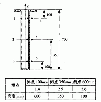 进气位置对陶瓷过滤器影响的试验研究 胡鹏睿 (陕西科技大学,陕西西安710021) 摘要:对进气位置对陶瓷过滤器对气流分布和粉尘层结构的影响进行了试验研究。结果表明:中部进气时气流沿过滤元件轴向的分布比上部进气和下部进气要均匀。在相同的△尸c/△m下,中部进气时的粉尘层渗透率比上部进气和下部进气的大,且沿过滤元件轴向粉尘层渗透率相差较小。 关键词:陶瓷过滤器;进气位置;压降;粉尘层渗透率 中圄分类号:TQ051.8~5 文献标识码:A 文章编号:1005—8265(2007)03-0006—04 1 引言 在化工、石油、冶金、电力及其他行业中,常产生高温含尘气体。由于不同工艺需要或回收能量或达到环保排放标准,都需对这些高温含尘气体进行除尘。在高温条件下,由于粘滞力有较大变化,湿度大幅下降,细颗粒凝聚现象大为降低,所以对微粒的分离有较高难度。另外,高温时采用的设备材质、结构形式以及热膨胀等问题往往影响设备的正常运行。因此,高温条件下气固分离技术在工程中属于有较高难度且亟需开发的课题,是国内外一项高新技术。 陶瓷过滤器为高性能阻挡式过滤器之一,除尘效率可达到99.9% 以上,净化后含尘气体中的尘粒浓度小于5 mg/Nm3,最大尘粒直径小于5 m,被认为是最具发展潜力的除尘设备[1】o 近年来,国内外对陶瓷过滤器的除尘效果进行了许多研究,但还存在许多技术问题有待于解决,其中之一为含尘气体沿过滤元件轴向的分布。气流分布均匀的好坏程度直接影响着陶瓷过滤器的长周期稳定运行.因此很有必要对气流沿过滤元件轴向的分布进行深入的研究。本文在一小型陶瓷过滤器过滤试验装置上,首次进气位置对气流分布和粉尘层结构的影响进行试验分析,为陶瓷过滤器的优化设计和运行提供依据。 2 试验原理 陶瓷过滤器的除尘机理,实际上就是捕集物(陶瓷颗粒)对粉尘的捕集分离机理回。气体经进气管进入陶瓷过滤器,经过滤元件外表面径向进入过滤元件内部,实现过滤。过滤元件的总阻力是指穿过清洁过滤元件、残余粉尘层和暂时粉尘层的压降总和。由反吹清洗后残余粉尘层和清洁过滤元件引起的压降称为基准压降。基准压降主要由粉尘层与过滤元件表面的结合力以及残余粉尘层的渗透率共同确定。过滤元件正常过滤时都处于积尘状态,其状态是随过滤时间变化的[31。对于陶瓷过滤元件,过滤元件上残留一定量的粉尘是保证高效过滤必不可少的条件,滤料借助残留粉尘来提高捕集效率131。 对于清洁过滤元件,其运行过程中阻力的大小为: 3 试验装置 试验用粉尘为众位径为24 m的325目滑石粉。陶瓷过滤器过滤除尘试验装置由过滤容器、过滤系统,反吹系统,给料系统、数据测试和数据采集系统构成。过滤容器的直径为200 mm、高1 900 mm。过滤元件直径为100 mm,壁厚20 mm,长700 mm,空隙率为0.4,整个试验装置如图1所示。 4.实验结果与讨论 4.1纯气流时在不同进气位置下沿过滤元件轴向的变化 为了对气流沿过滤元件轴向的分布一全面的认识,采用纯气流对三种不同的进气位置进行清洁过滤试验,其初阻力沿过滤元件轴向的分布如图2。可以看出,进气位置对过滤速度和压力沿过滤元件轴向的分布有着较大的影响。 在三种不同的进气方式下,过滤元件的初阻力均随进气流量的增大而增大,过滤元件各个测点处的初阻力大小分布依次为:测点600 mm、测点100 mm、测点350 mm;在不同进气位置和相同进气流量下,阻力从大到小依次为:中部进气,上部进气,下部进气;其中测点10 mm和测点600 mm处的初阻力很接近,这说明进气位置对过滤元件两端的速度和压力分布较小。中部进气时初阻力沿过滤元件轴向分布较上部进气和下部进气时分布均匀。