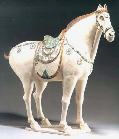 唐三彩各种形象的器物都气宇轩昂,有个性、有情调、有姿态,线条流畅,骨肉停匀,神完气足,有着独特的动感造型,千姿百态,栩栩如生。再加上斑斓绚丽的彩釉,使唐三彩造型更是不同凡响。唐三彩富有弹性的线条,既流畅又有力的组成形体,变化自然,生机勃勃,具有强烈的时代精神,是光辉灿烂大唐文化的一个体现。在人物俑中,武士肌肉发达,怒目圆睁,剑拔弩张;女俑则高髻广袖,亭亭玉立,悠然娴雅,十分丰满。动物则以马和骆驼为多。