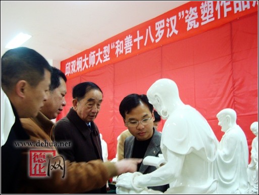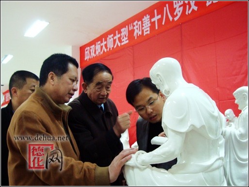 【德化网 讯】“中国白”大型雕塑《和善十八罗汉》是德化县凤凰陶瓷雕塑研究所所长(高级工艺美术师、福建省工艺美术大师)邱双炯先生应邀为2009年三月在江苏省无锡灵山召开的世界佛教论坛大会“天花烂漫”展览项目参展而作。历时一年多时间炼制完成,于牛年的正月初一至十五(2009.1.26-2.09)期间在德化陶瓷博物馆隆重推出展览。市民们可以在此期间前往参观。