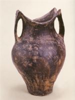 马鞍形口、长颈、深腹略鼓、平底。口与肩之间有两个对称的双耳。器表塗有一层细泥陶衣。