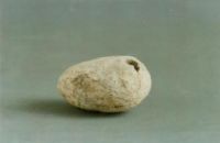 夹砂灰陶,形状为椭圆状,在器物的顶部有一圆孔,作吹奏作用。素面。