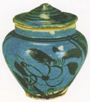 图片名称: 磁州窰绿釉黑花茶花纹蓋罐