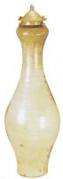 盂口,長頸,長圆腹,圈足。上配笠帽形尖鈕蓋,邊置三圆形繫,和器肩三繫對應,用以穿繩,以防蓋滑落。
