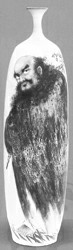 浦东双季花艺的“永生藏瓷”陈列馆内,有几件表现嫉恶如仇的钟馗和大气凛然的达摩(见图)瓷绘作品,给人以明快淋漓之感,它们是江西高级工艺美术师余冬保的近作。