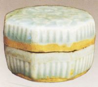 由器身和器盖雨部分構成,一般多為圆形。宋代常兄的有方形、六方形、八方形、瓜形、花形、果形等。流行於唐,盛於宋,元代繼之。按用途可分為藥盒、油盒、香盒、粉盒。此盒呈八方形,為夾層粉盒,用以调製香粉。