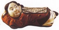 枕呈臥女形象,此女頭髮向后梳起,而臉雙滿,微帶笑姿,上身穿褐黃色窄袖衫,下身著白色窄褲,雙肩枕於頭下。此枕造型新穎別致,釉色鮮艷,且有濃厚的 民間氣息,墓葬出土保存完好。