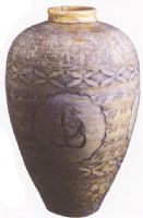小口,短徑,雙肩,長圓腹,假圈足。素胎上繪褐彩人物及花卉紋。南海窰為廣東地區古窰場,其產品極為少見。此器形體渾圓,彩繪精緻,紋飾複雜,但層次分明,構圖謹慎,人物生動,表現出南海窰工匠的高超技術。