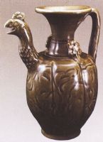 壺腹呈瓜棱狀,並刻有牡丹花紋,流作鳳首状。通體施青釉。耀州窰是北方青瓷名窑,始烧於唐,歷經五代,到北宋時發展到其歷史的高峰,此時的青瓷以其犀利流暢的刻花、豐富多彩的纹饰和晶瑩温润的青釉相互結合,相的益彰,形成了獨特的藝術風格。