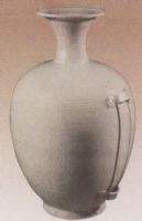 盤口,長頭。器兩侧有凹槽,有孔洞以便穿繩提起,通體施自釉。此器為遼墓出土,墓主耶律羽之(公元890一941年)為遼代皇族,又是一代重臣,此墓出土静多精美的随葬品,荔考古的重要發现。
