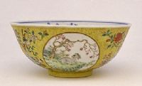 图片名称: 黄地开光粉彩三阳开泰纹碗