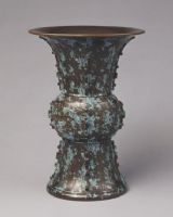 此件瓷尊无论造型还是颜色均刻意模仿青铜器,达到了使人仅凭肉眼无法辨别是瓷还是铜的地步,这种釉色是乾隆时期的新创釉色。