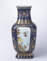 图片名称: 霁蓝釉描金地开光粉彩花鸟纹方瓶