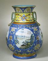 图片名称: 粉彩加珐琅彩开光山水纹转颈瓶