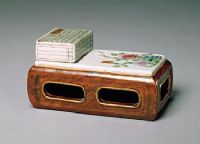清乾隆朝的瓷质墨床多有仿竹木釉、家具式者,其造型均秀巧新奇,施釉刻意摹仿竹木器的质地感,并施以五彩、粉彩等纹饰,成为一类清雅优美的文玩。