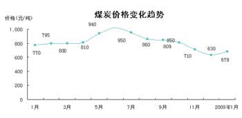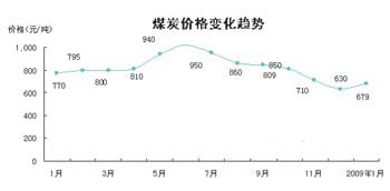 受到金融危机影响,煤炭价格从2008年年中开始一路下滑。但是2009年1月的煤炭价格有所回升,如5500卡以上的动力煤,其1月份的价格为679元/吨,环比上升了39元。拉动煤炭价格回升的主要原因是进入冬季以来,北方对煤炭的需求增加。而临近两节和春运, 电厂也加大了对煤炭的采购力度。