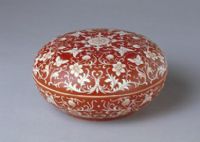 图片名称: 矾红地白花蝴蝶纹圆盒