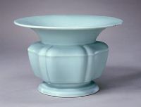 此尊线条优美流畅,隽秀娴雅,在造型上颇具艺术韵味。雍正时期的粉青釉瓷器是模仿明代永乐时期同类釉色品种的产品,但和永乐时期的粉青釉器物相比,雍正时期的粉青釉釉层更显纯润厚实。