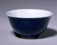 此杯胎薄体轻,造型规整,釉色均匀润泽。此类霁蓝釉器物多在祭祀时使用,因此又被称为祭蓝釉。