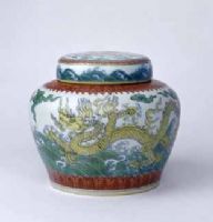 图片名称: 斗彩海水龙纹“天”字盖罐