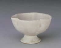 杯口呈五瓣花形,器身呈花瓣状,高足微外撇。通体施白釉。此杯造型仿金银器中花瓣形高足杯而制,精致细巧,釉色洁白,釉质光润,体现了宋代白瓷的烧制水平。