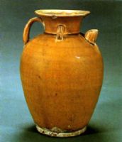 注子是唐代较为流行的酒具。寿州窑黄釉注子除造型工整,制作精美外,其最具特色是纯正腊黄的釉色,且釉面光滑匀净。这是缘于在施釉前先上了一层化妆土,又称“瓷衣”,它掩盖了胎骨的粗糙,起到了美化瓷器釉面的作用,因此寿州窑的黄釉产品在唐代的瓷器中有其独特的艺术魅力。