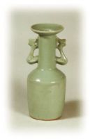 器作盘口,长颈两侧各塑一凤耳,斜肩,直腹。凤耳瓶是南宋龙泉窑特有的作品。粉青是指南宋中期龙泉窑烧制的一种接近淡天蓝色的乳浊釉青瓷,它的釉属石灰碱釉,经重复施挂,精心焙烧而成,珍贵在于器型完成,无损伤,釉色纯正滋润,代表我国南宋中期青瓷的最高水平,存世甚少,极为珍贵。