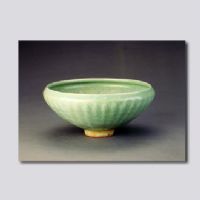 首都博物馆藏。敛口,弧腹,小圈足,足脊无釉。内外施青釉。内壁刻大朵莲花,外壁刻菊瓣纹。釉色青翠,釉层厚润,有细碎冰裂纹。