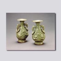首都博物馆藏。喇叭口,长颈,溜肩,垂腹,圈足。颈肩和腹部饰有弦纹,颈部两侧各有一兽耳衔环。腹部凸雕双龙及双凤纹。釉色淡青,釉层厚润。器物造型淳朴,胎体厚重。龙泉窑始烧于北宋前期,南宋极盛,明中后期渐衰。