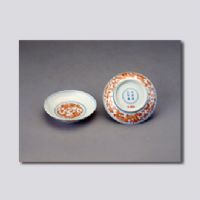 首都博物馆藏。敞口,浅腹,圈足。盘外壁、盘心绘红彩夔龙衔灵芝纹。外底书青花双圈“大清雍正年制”6字双行楷书款。