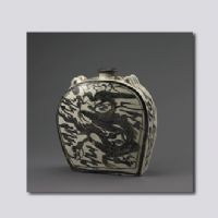 图片名称: 磁州窑白地黑花龙凤纹四系扁壶