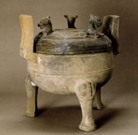 说 明: 泥质灰陶。直口微敛、双方形竖耳、浅圆腹,圈底。