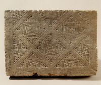 说 明: 泥质灰陶。砖面近长方形,砖面上印制菱形几何图案纹饰。