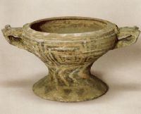 说 明: 泥质灰陶。器表各部用红彩绘制出云雷纹与曲折纹等图案装饰。