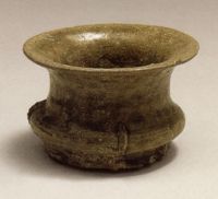 说 明: 器物敞口,沿外卷,细长直径,扁圆腹,圈足。