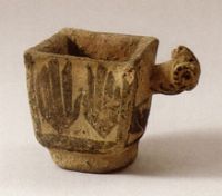 说 明: 泥质红陶.器表用黑彩绘制出边线与纹饰.