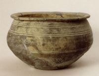 图片名称: 灰黑陶人字纹盆