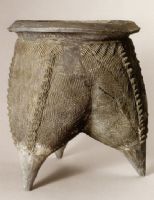 说 明: 砂质灰陶。敞口、卷沿、深腹圆鼓、三袋状、高足尖。