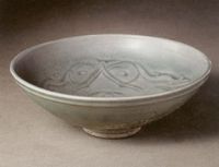 说 明: 碗内刻花装饰清晰地显露在明丽的青绿色釉下。
