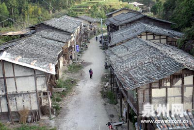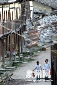汽车在一排房子前停住了。这是一条仅有100多米长,街面宽约6米的古街。两边的房子显得破旧了,还有一间房子已经倒塌。屋旁边堆着几排的瓦片。春美乡党委书记林大利说,这是前不久在台风中倒塌的。当时村民把房子的木头全部卖了,乡里得知消息后立即赶来制止。有消息说,乡政府想把这条街保护起来。