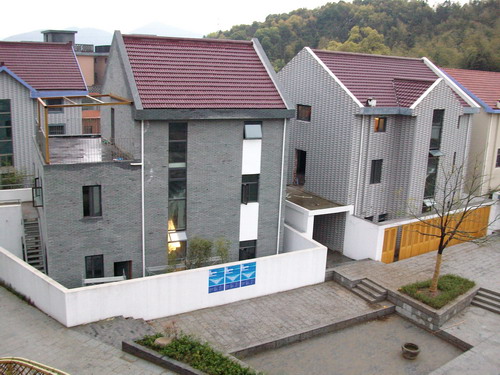 好奇心驱动下,赶紧催促工作人员带我们去参观了网易陶瓷的那两栋楼。到了之后一看,原来名字叫"网易兰亭陶瓷工作室",两栋很漂亮的小楼,周围的环境也很优美。这么漂亮的小楼租金贵不贵呢?据介绍,网易签了5年合同,前两年是免费使用,后三年的每平米日租金为6毛钱,真是便宜啊。下面是刘兴亮拍的几张照片: