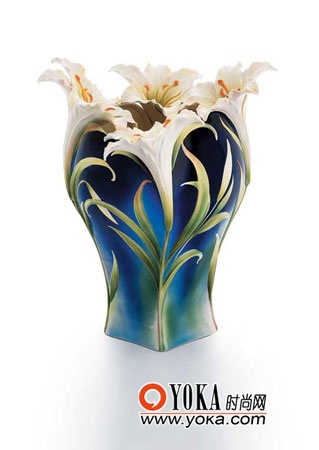 如果你喜欢一些写意的小件,幸运临门小花瓶和杯碟组合都是很好的选择。设计师林诗畔的代表作悠然绽放百合花瓶(7358元)也是法蓝瓷众多设计师作品中颇受欢迎的一件。
