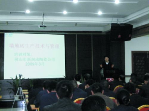 广东省润成陶瓷有限公司在金融危机下加强员工培训的力度,日前邀请武汉理工大学教授、佛山玻尔陶瓷科技有限公司总经理蔡飞虎对该公司的200多名生产技术骨干进行专业系统性培训,其中首期主讲陶瓷坯体干燥,结合播放现场操作的幻灯软件,深入浅出地讲解了干燥窑工艺管理制度及干燥砖坯的操作规程,进一步提高了员工的专业技术素质。