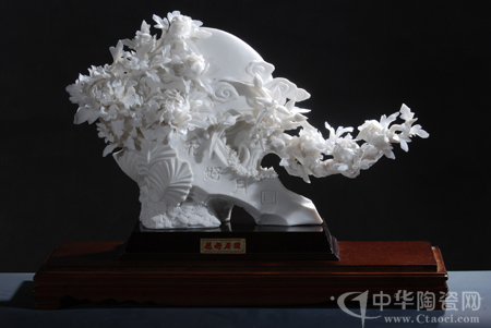 《花好月圆》是周秀燕的呕心沥血之作,以牡丹、菊花、圆月为题材,运用纯手工捏塑,经1310℃烧制而成。作品荣获金奖 。