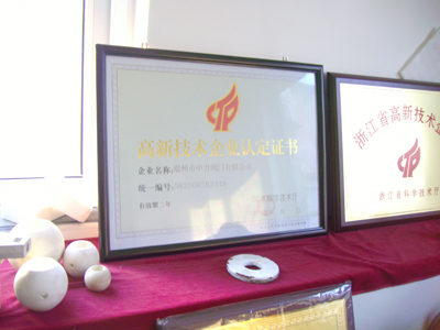 温州市中力阀门有限公司,近年来依靠自主创新能力,走自主研发新品之路,努力开发节能型陶瓷阀门新产品,其开发陶瓷阀门新产品,至今拥有20多项国家专利,既为企业获得了较快发展,又为企业带来良好的经济效益,企业也走上了平稳发展之路,也成为我国阀门行业中陶瓷特种阀门产品握有国家专利证书最多的企业之一。最近又被浙江省科技厅重新审核评定为“浙江省高新技术企业”的荣誉,成为业内一家名副其实的科研型制造企业。