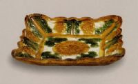 说 明: 模制成型,淡红色陶胎,上白色化妆土.该器造型优美,做工精细,釉色明艳.