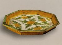 图片名称: 三彩釉印泥牡丹花八方盘